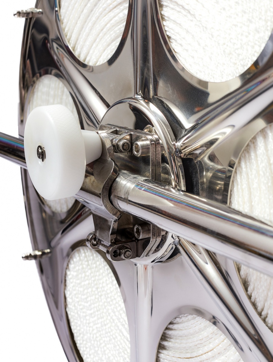 In the past, this product was known as Quickline and has been offering easy storage of fl at rope line on stern for many boat owners. Generally used as stern mooring line or stern anchor line and being easy and quick to store when not in use. Now the New ULTRALINE with Dyneema fl at fl oating rope with breaking load increased up to 3200 Kgf. The width of the line is 22mm and it has become the only fl at line that is much closer to regular rope in shape, reducing the noise problem of the previous model. Also its high breaking load and UV resistances increase its efficiency.
